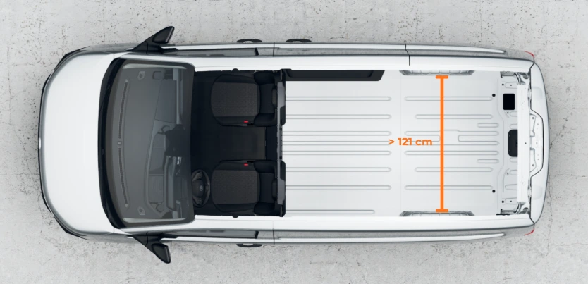 Zoek het smalste punt in je laadruimte. Meestal is dit de ruimte tussen de wielkasten op de vloer. Je hebt hier minimaal 121 cm nodig om de box er soepel in te kunnen schuiven.