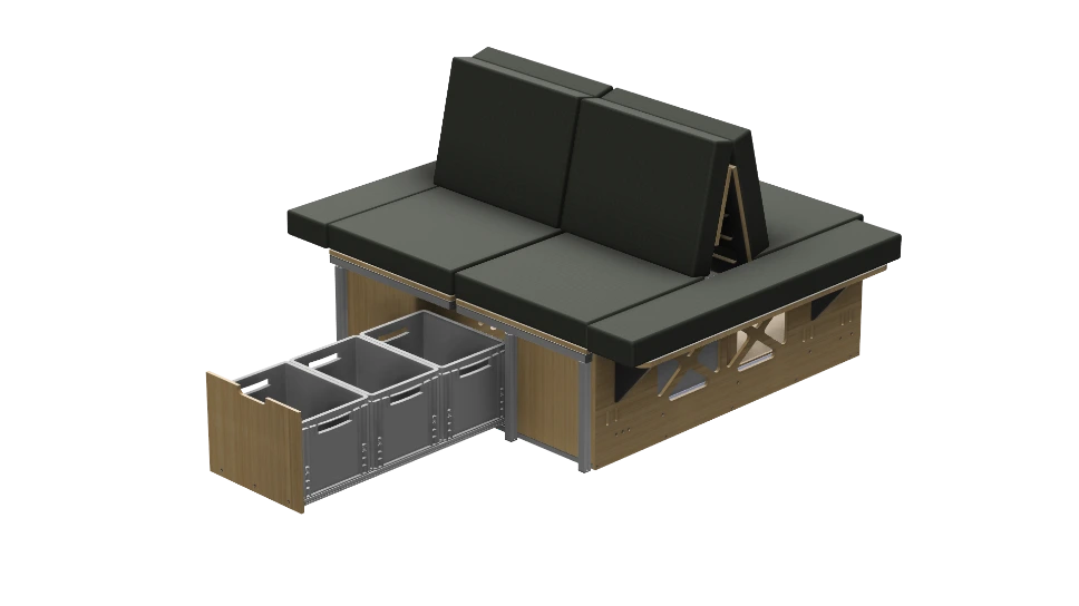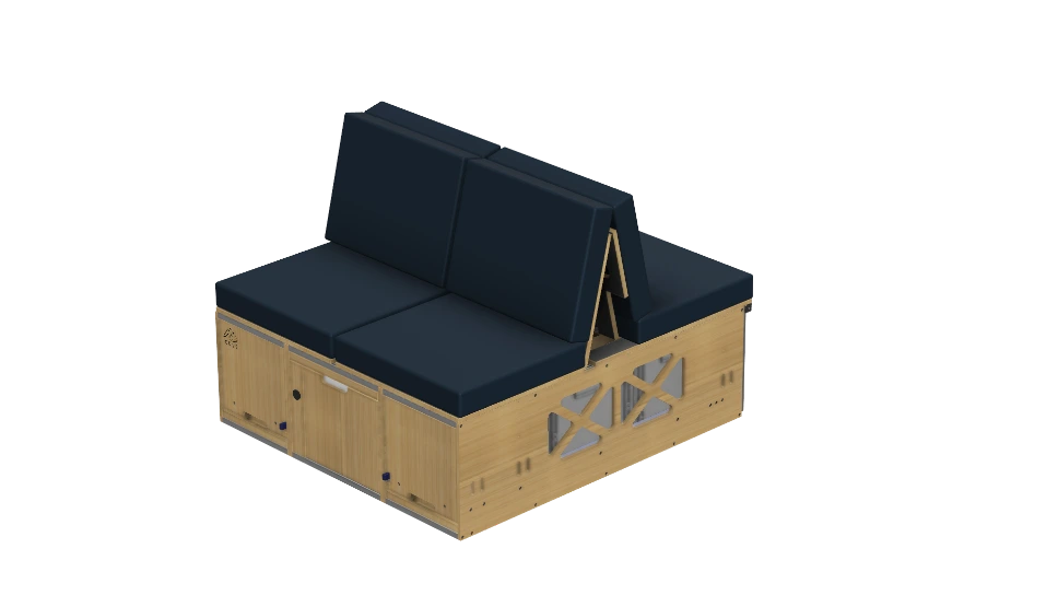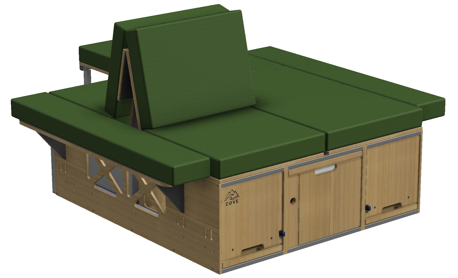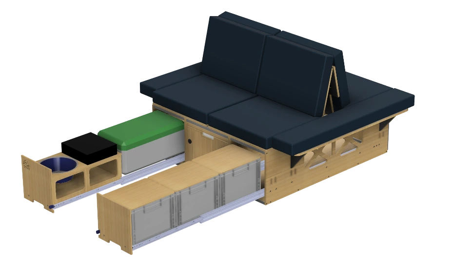bestaat uit drie ladedelen en twee beddelen. De box onderscheidt zich van andere camperboxen vanwege de modulariteit; in plaats van één box, bestaat de Covebox uit drie losse modules, die je flexibel en onafhankelijk van elkaar kunt gebruiken.